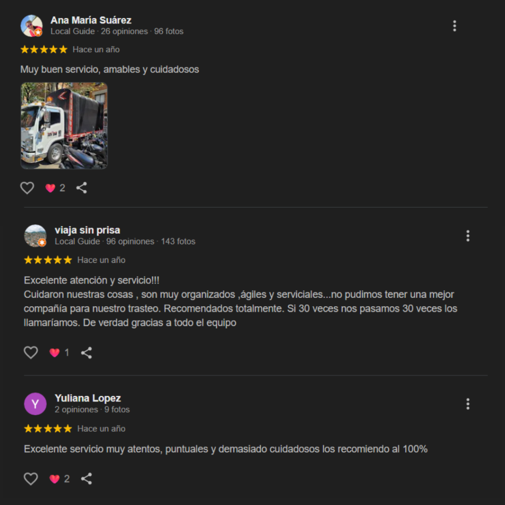 Contamos con años de experiencia en mudanzas urbanas, entregas express y logística personalizada. Nuestro equipo ha atendido cientos de clientes con eficiencia, cuidado y puntualidad, adaptándonos a cada necesidad con soluciones prácticas y confiables.
